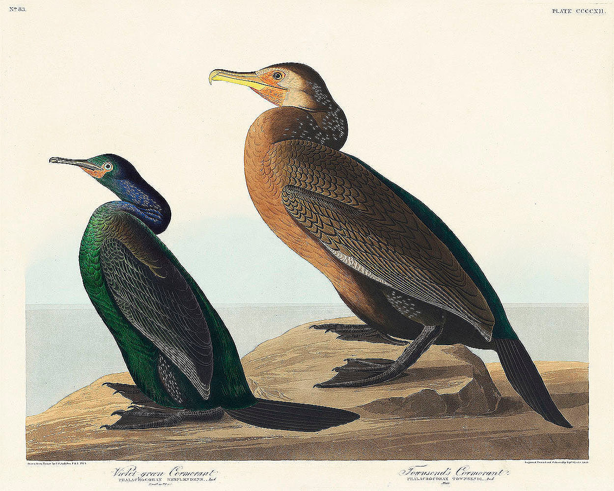 Violet-green Cormorant and Townsend's Cormorant by John James Audubon