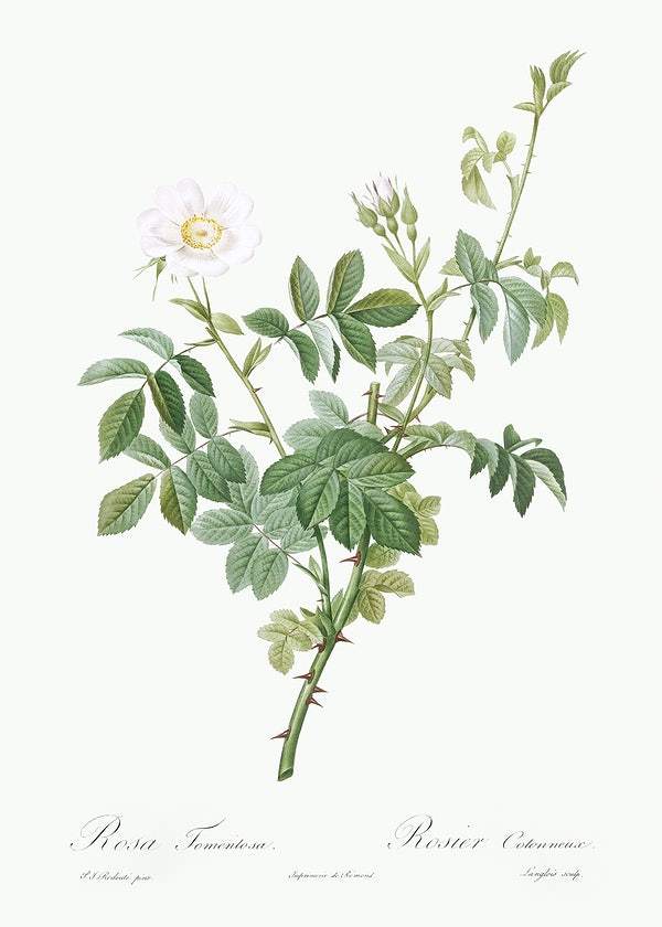 White Downy Rose by Pierre-Joseph Redouté (1817-24)